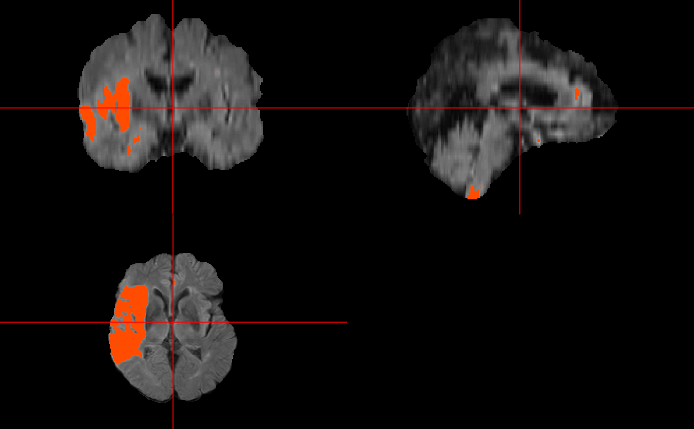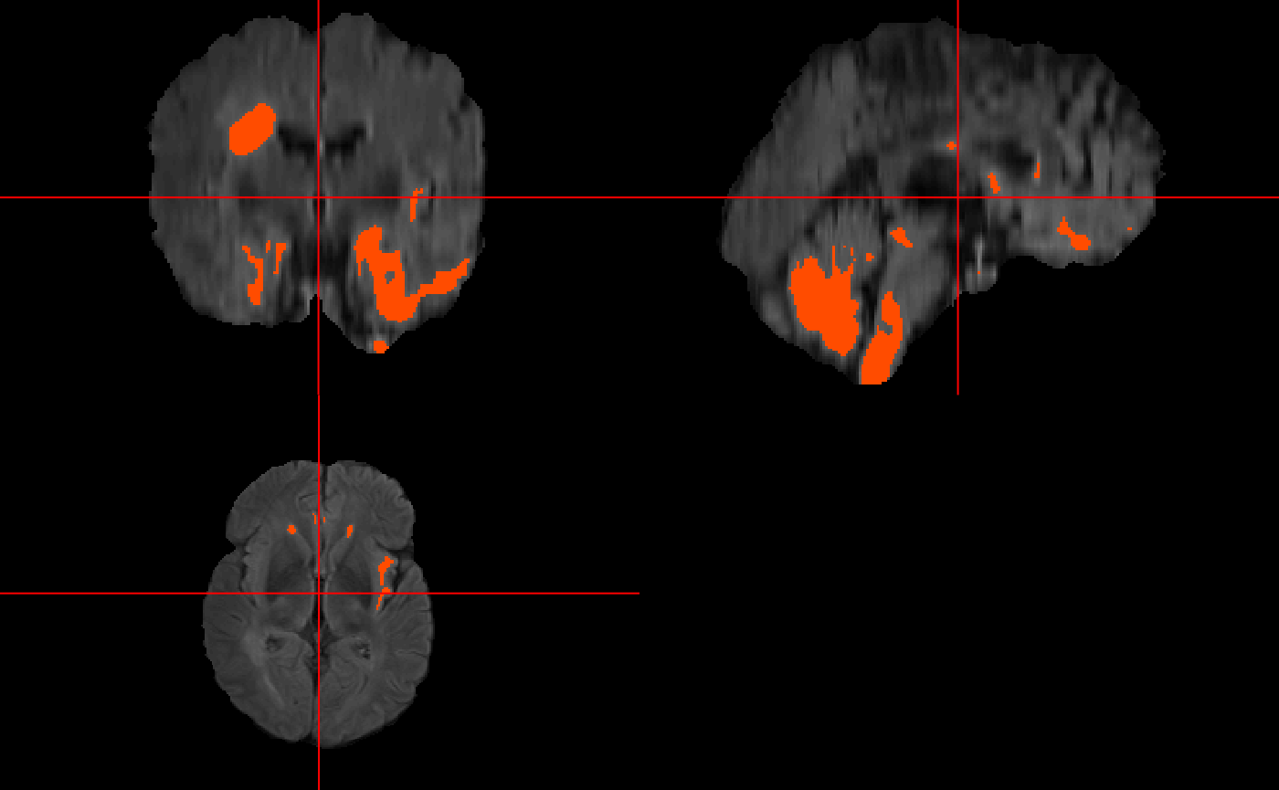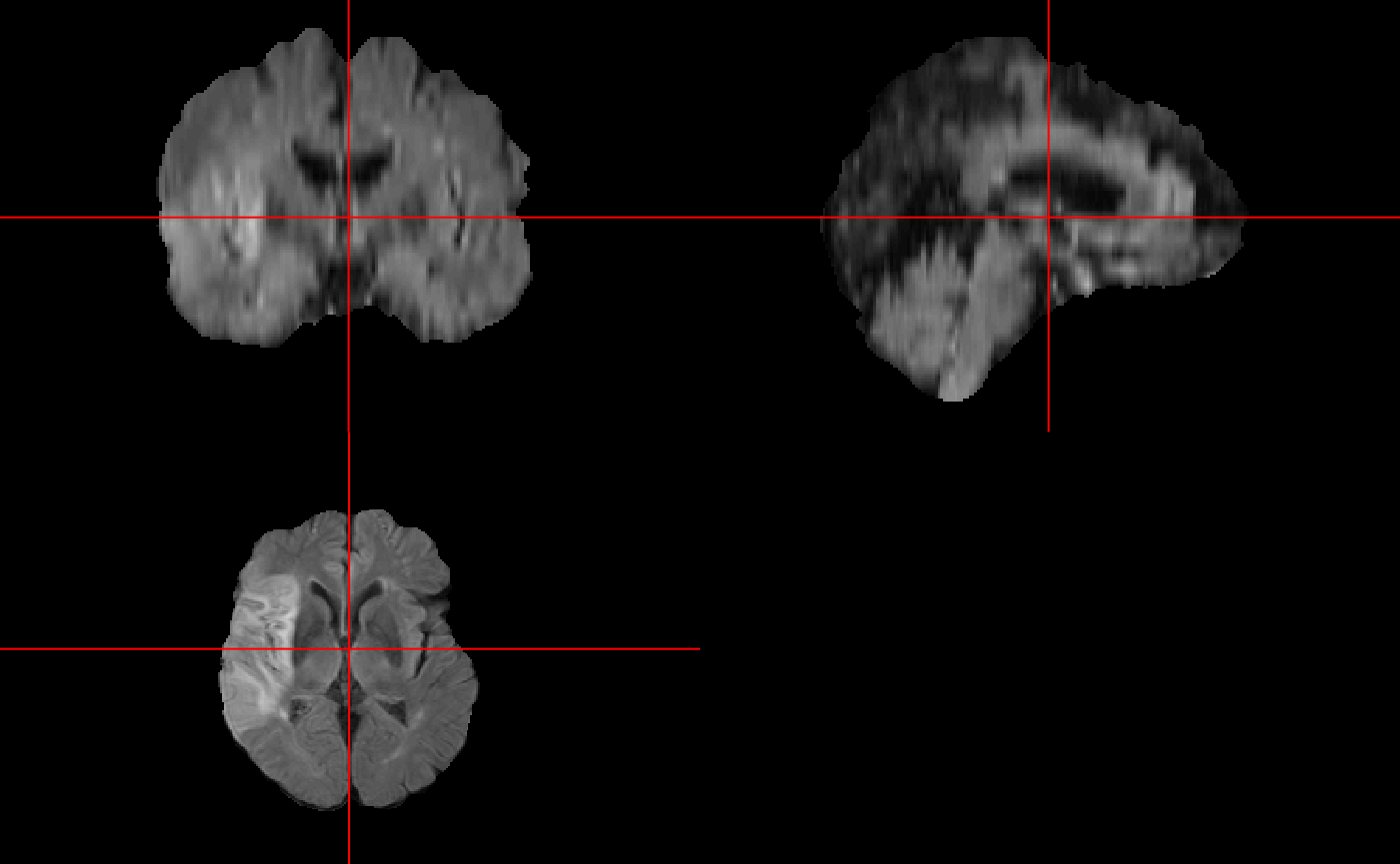 For this vignette, we will use the medals package to train on two subjects with multimodal MRI (FLAIR, DWI). Every subject’s image is skull-stripped coregistered to the FLAIR, and smoothed. Then, every image is normalized using a trimmed normalization. We will analyze only the 1st order moment image. Then we will test the fitting on a separate subject.